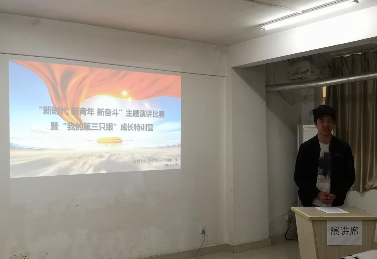 4月15日中午12:30,在63棟大學生學習支持中心三號學習室如期舉行了2019年材料與化學學院的“新時代新青年新奮斗”主題演講比賽暨“我的第三只眼”成長特訓營院內(nèi)初選。材料與化學學院黨委副書記余江濤老師、17級輔導員陳文婷老師和18級輔導員唐偉老師作為評委出席了本次活動。
