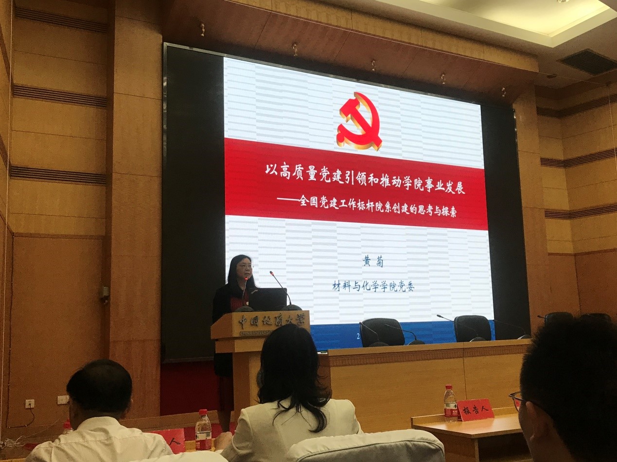 會上,全國黨建工作“標桿院系”培育創(chuàng)建單位負責人材料與化學學院黨委書記黃菊以“以高質量黨建引領和推動學院事業(yè)發(fā)展——全國黨建工作標桿院系創(chuàng)建的思考與探索”為題做了交流報告。