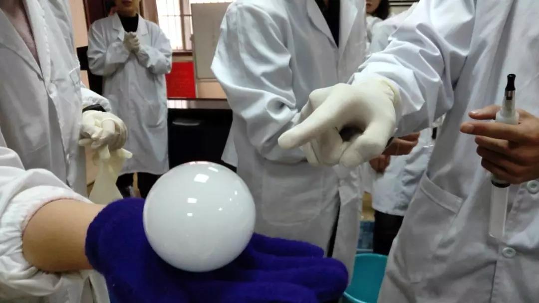 牛奶和椰子油在燒杯中加熱后變成液體,注入塑形模具后冷卻,“DIY牛奶香皂”大功告成。