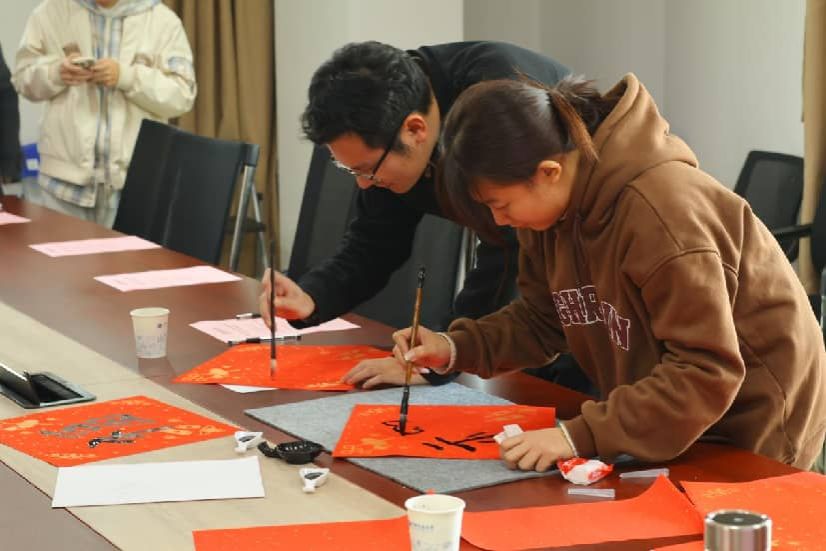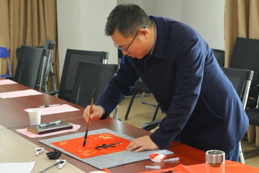 述職結(jié)束后,梁本哲與師生一同揮毫書寫“福”字,以筆墨傳遞對全院師生的新年美好祝愿。