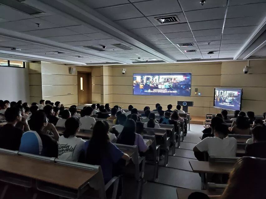 觀影過程中,同學們安靜認真地欣賞著這部影片,領悟影片所傳達的愛國主義思想和當初中華人民共和國成立過程的艱難,透過影片同學們感受到當時毛主席所領導的老一輩革命家心中澎湃的愛國熱情和堅持抗戰(zhàn)到底的決心。