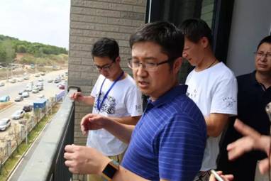 院長(zhǎng)夏帆、辦公室主任李曉曄、輔導(dǎo)員白振洋、唐偉查看宿舍陽(yáng)臺(tái)護(hù)欄