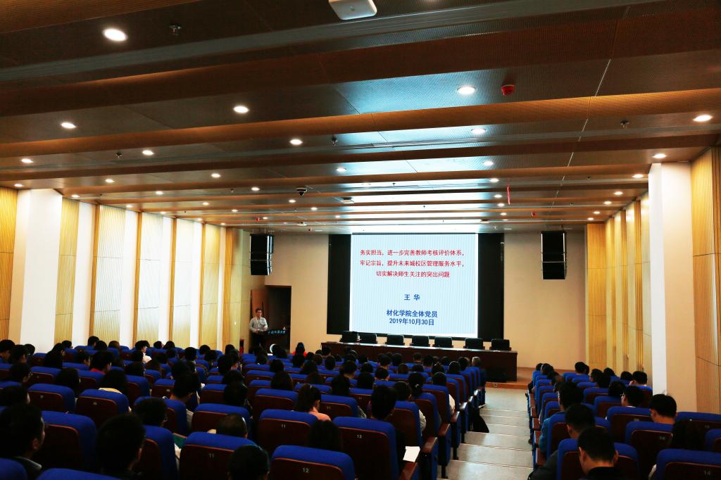 (通訊員:陳文婷)10月30日,學校黨委常委、副校長王華以《務實擔當,進一步完善教師考核評價體系,牢記宗旨,提升未來城校區(qū)管理服務水平,切實解決師生關注的突出問題》為題,在未來城校區(qū)科教五樓110報告廳為材化學院師生黨員講黨課。本次黨課由學院黨委書記黃菊主持。