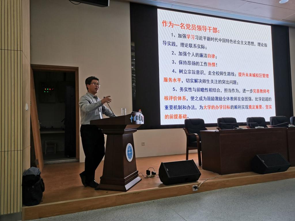 隨后,副校長王華從未來城校區(qū)管理中的現(xiàn)狀和問題出發(fā),以守初心、擔使命為指南,詳細介紹了他在未來城校區(qū)管理與服務工作中找差距、抓落實的過程,同時,深刻剖析了未來城校區(qū)管理工作中的不足之處,明確了未來城校區(qū)管理的努力方向與工作重點。他指出,“樹立宗旨意識,走全校師生路線”,落實到未來城校區(qū)的發(fā)展上,就是提升未來城校區(qū)管理服務水平,切實解決師生關注的突出問題。
