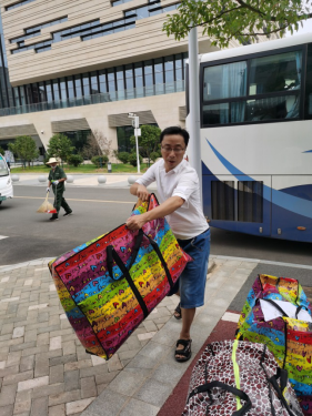 院辦范良老師協(xié)助學生搬運行李