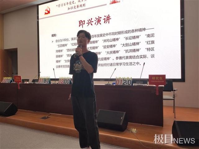 即興演講也是一中自我教育。各位選手圍繞黨的百年歷史形成的精神譜系開展演講。“紅軍不怕遠(yuǎn)征難……”抽到長(zhǎng)征精神的同學(xué)語(yǔ)言鏗鏘,以詩(shī)言志,闡發(fā)對(duì)長(zhǎng)征精神的看法。隨后,紅旗渠精神、航天精神、抗疫等精神內(nèi)核不斷被闡明。