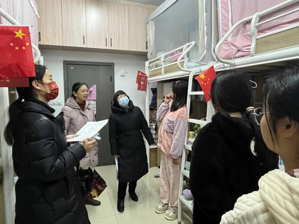 開學(xué)前夕,為了解同學(xué)們的返校情況,增進(jìn)與同學(xué)們生活中的交流,材化學(xué)院黨委書記黃菊、副書記余江濤、化學(xué)系主任程國(guó)娥、材料系主任梁玉軍及輔導(dǎo)員李桂嬌一行深入宿舍走訪慰問學(xué)生。老師們與同學(xué)們親切交流,關(guān)心同學(xué)們的感染與康復(fù)情況,提醒同學(xué)們近期仍要做好自身防護(hù),防寒保暖,當(dāng)好自身健康第一責(zé)任人。此外,開學(xué)第一周同學(xué)們面臨著上學(xué)期延期的期末考試,老師們十分關(guān)心大家的學(xué)習(xí)狀況,提醒同學(xué)們安心、用心備考,盡最大努力取得良好成績(jī)。