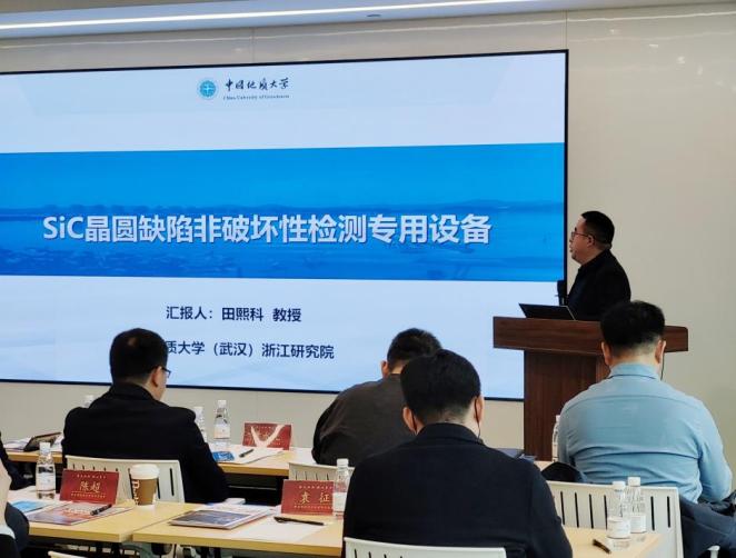 材化學(xué)院副院長(zhǎng)周成岡以“儲(chǔ)能與環(huán)境領(lǐng)域中一些關(guān)鍵材料的設(shè)計(jì)與應(yīng)用”為題,材化學(xué)院教授、浙江研究院院長(zhǎng)田熙科以“半導(dǎo)體SIC晶圓缺陷檢測(cè)專用設(shè)備”為題,材化學(xué)院副教授葛文以“鋰電池、電子就鋰電池、電子封裝、資源及固廢利用”為題,分別進(jìn)行學(xué)術(shù)研究分享交流。