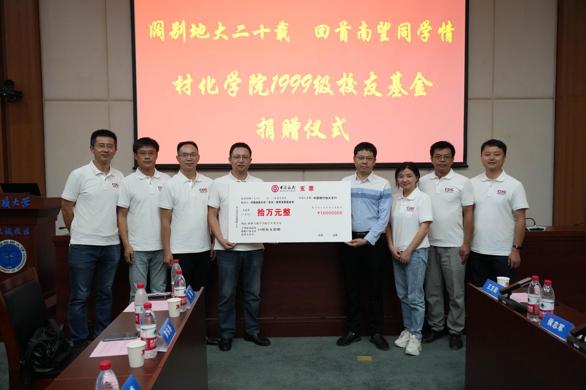 座談會期間,羅東岳校友代表99級全體校友為學(xué)院捐贈十萬元,設(shè)立“材化玖玖獎(jiǎng)學(xué)獎(jiǎng)教金”,用以獎(jiǎng)勵(lì)材化學(xué)院優(yōu)秀師生。