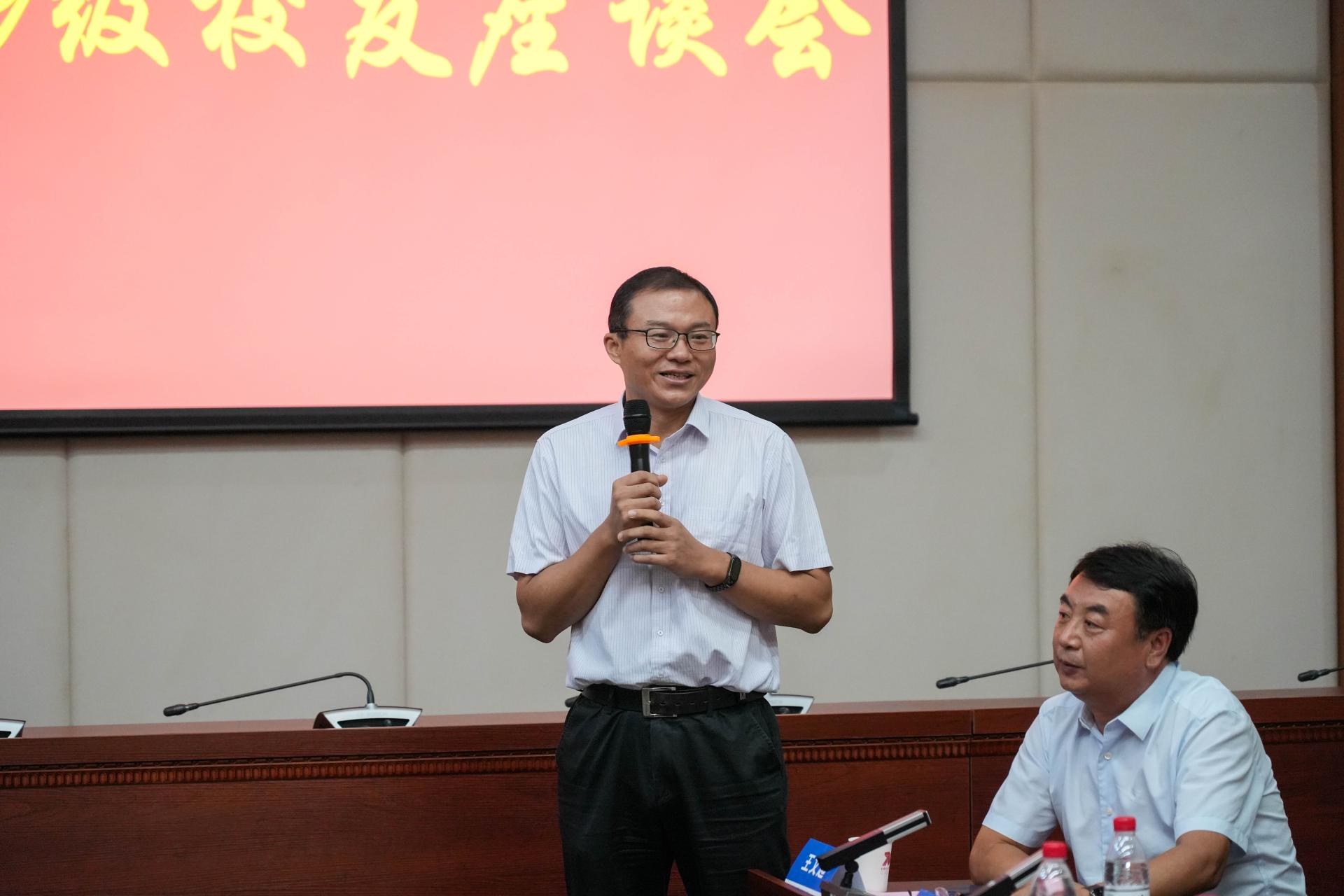 9月9日上午9時(shí),材料與化學(xué)學(xué)院99級校友畢業(yè)二十年返校座談會在未來城校區(qū)教學(xué)服務(wù)中心101會議室舉行。校黨委常委、組織部部長、統(tǒng)戰(zhàn)部部長、時(shí)任材化學(xué)院黨委副書記陳文武,黨委宣傳部部長、時(shí)任材化學(xué)院99級輔導(dǎo)員侯志軍,未來城校區(qū)管理辦公室主任、時(shí)任材化學(xué)院輔導(dǎo)員王文起,材化學(xué)院黨委書記梁本哲,院長胡兆初,學(xué)院黨委副書記余江濤,老教師代表沈上越、范力仁,材料系、化學(xué)系、院直教師代表,學(xué)院學(xué)生會主席團(tuán)以及地子歸社團(tuán)學(xué)生代表與99級40余名校友歡聚一堂、座談交流。學(xué)院黨委副書記余江濤主持座談會。