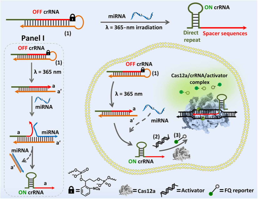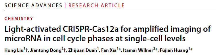 近日,材料與化學(xué)學(xué)院夏帆教授/黃福建教授課題組在光激活CRISPR系統(tǒng)高效單細(xì)胞miRNA成像研究方面取得進(jìn)展,相關(guān)研究成果以“Light-activated CRISPR-Cas12a for amplified imaging of microRNA in cell cycle phases at single-cell levels”發(fā)表于Science Advances (Sci. Adv. 2024,10, eadp616。 微小RNA(miRNA)是一類小的非編碼RNA,它的異常表達(dá)與各種疾病的發(fā)生和發(fā)展密切相關(guān),可作為癌癥診斷、預(yù)后、進(jìn)展和復(fù)發(fā)的生物標(biāo)志物。然而,細(xì)胞內(nèi)的miRNA含量很低,因此需要開發(fā)信號(hào)放大的miRNA檢測(cè)方法。傳統(tǒng)的miRNA檢測(cè)方法,如實(shí)時(shí)熒光定量PCR(RT-qPCR)和滾環(huán)擴(kuò)增(RCA),雖有較高的靈敏度,但在單細(xì)胞水平上的檢測(cè)和成像仍存在挑戰(zhàn)。 夏帆教授/黃福建教授課題組在前期光響應(yīng)功能核酸生物傳感研究基礎(chǔ)上,發(fā)展了一種新的光激活CRISPR系統(tǒng)用于活細(xì)胞中miRNA-21的信號(hào)放大檢測(cè)及其成像。該系統(tǒng)在單細(xì)胞水平上實(shí)現(xiàn)時(shí)空選擇性激活,以評(píng)估m(xù)iRNA-21在不同細(xì)胞周期階段的相對(duì)表達(dá)水平,從而繪制單細(xì)胞陣列中不同細(xì)胞周期階段的miRNA-21含量分布圖。該方法為深入研究不同細(xì)胞周期中miRNA的功能,從miRNA水平上分析細(xì)胞周期調(diào)控的新機(jī)制提供了一種有力的分析手段。 該研究工作中國(guó)地質(zhì)大學(xué)(武漢)博士生劉紅為論文的第一作者。希伯來大學(xué)Itamar Willner 教授、中國(guó)地質(zhì)大學(xué)(武漢)夏帆教授和黃福建教授為本文的共同通訊作者。該工作得到了國(guó)家自然科學(xué)基金重大項(xiàng)目,國(guó)家重點(diǎn)研發(fā)計(jì)劃以及中-以國(guó)際合作等項(xiàng)目資助。(編輯:黃福建 審稿:梁本哲) 論文鏈接:https://www.science.org/doi/full/10.1126/sciadv.adp6166