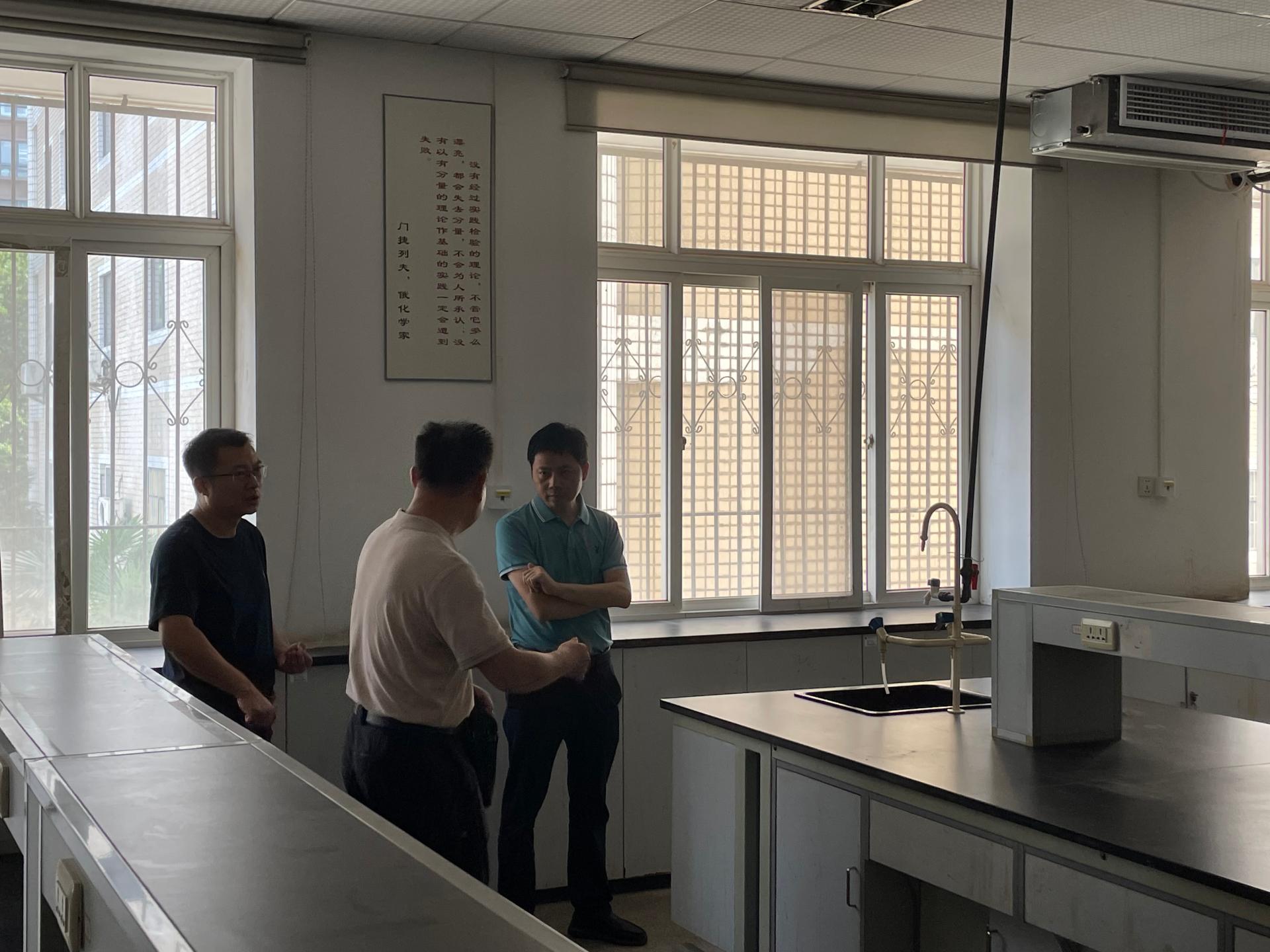 大家逐一走訪南望山校區(qū)每間教學(xué)實驗室,了解南望山校區(qū)基礎(chǔ)化學(xué)實驗室承擔(dān)的實驗課程和教學(xué)實驗室管理情況,對每間實驗室硬件設(shè)施建設(shè)、使用情況和正在實施的基建改造進(jìn)行詳細(xì)的查看和了解。