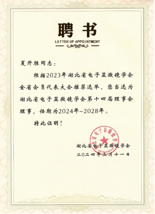 湖北省電子顯微鏡學(xué)會(huì)2024年理事會(huì)會(huì)議于12月28日在武漢大學(xué)科研公共服務(wù)條件平臺(tái)舉辦。會(huì)議吸引了來(lái)自全省范圍內(nèi)的科技資源服務(wù)機(jī)構(gòu)、高等院校科研公共服務(wù)平臺(tái)、科研院所公共檢測(cè)中心、知名第三方檢測(cè)機(jī)構(gòu)以及企業(yè)檢測(cè)或質(zhì)檢中心等眾多機(jī)構(gòu)代表參會(huì)。我院嚴(yán)春杰教授、夏開(kāi)勝副院長(zhǎng)作為新一屆學(xué)會(huì)理事受邀參會(huì),分析測(cè)試平臺(tái)王洪權(quán)副主任也參加了本次盛會(huì)。會(huì)上,湖北省電子顯微鏡學(xué)會(huì)理事長(zhǎng)趙東山向嚴(yán)春杰、夏開(kāi)勝兩位教授頒發(fā)了理事聘書(shū)。本次會(huì)議共有13位專(zhuān)家報(bào)告,夏開(kāi)勝副院長(zhǎng)在會(huì)上介紹了我校電鏡類(lèi)儀器設(shè)備建設(shè)情況,以及我院分析測(cè)試平臺(tái)儀器設(shè)備開(kāi)放共享舉措和成效。