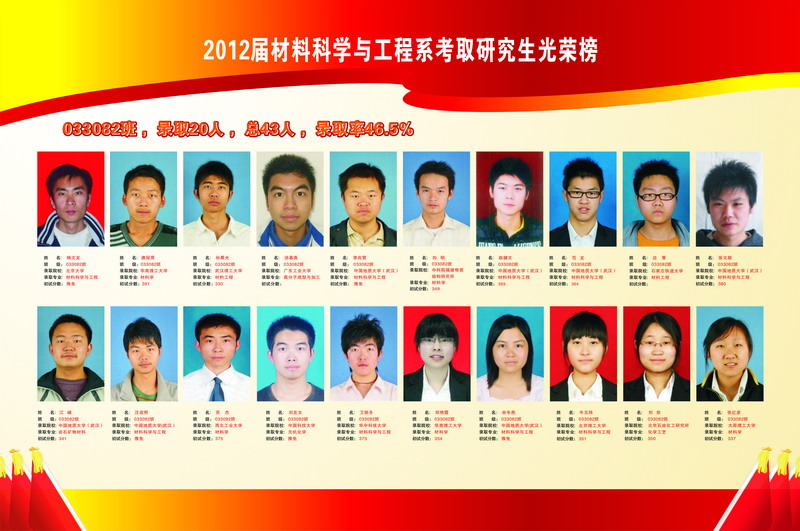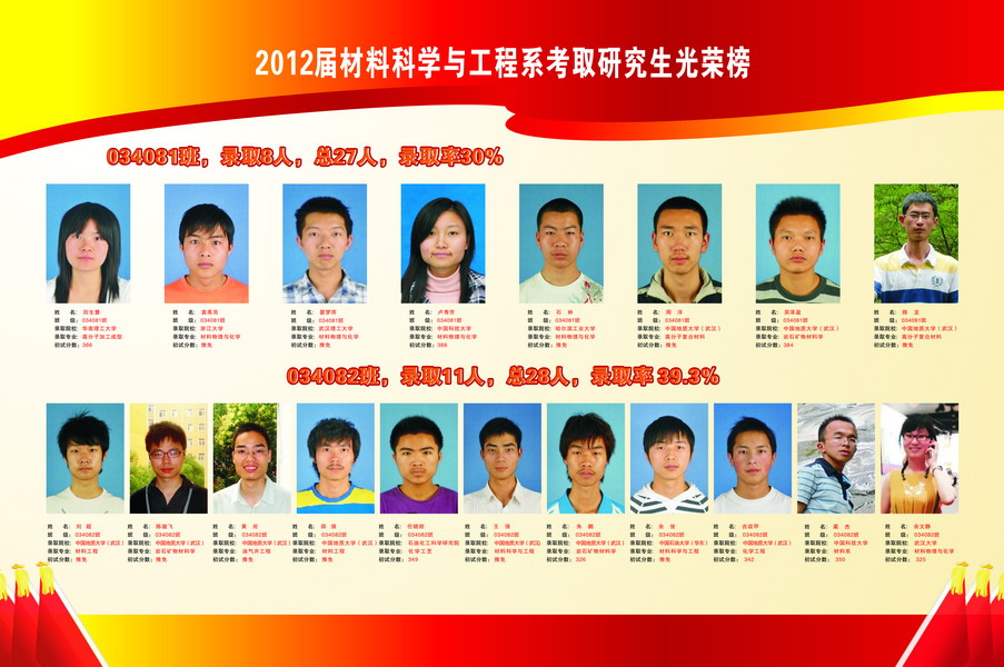 2012屆材料科學與工程系考取研究生光榮榜