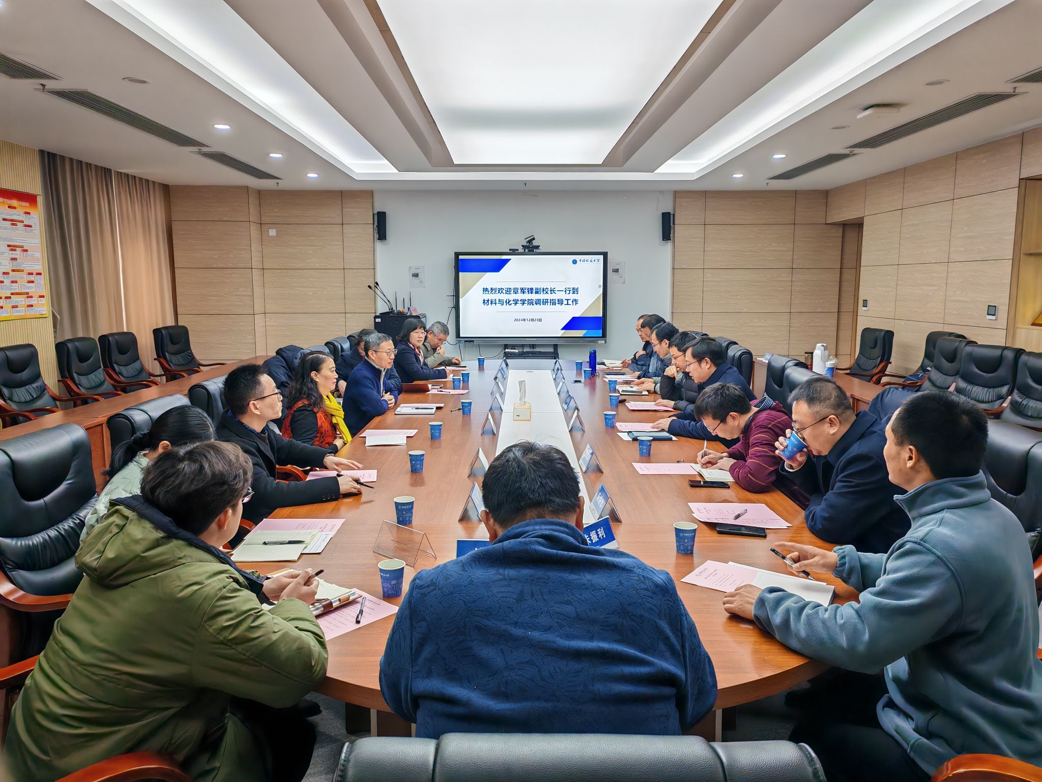 12月23日上午,章軍鋒副校長到材化學(xué)院調(diào)研,聽取學(xué)院發(fā)展情況匯報(bào),并對學(xué)院建設(shè)發(fā)展進(jìn)行指導(dǎo)。學(xué)院全體院領(lǐng)導(dǎo)、分工會主席、各系(中心)主任、教工黨支部書記、教師代表等參加座談交流。學(xué)院黨委書記梁本哲主持調(diào)研座談會。