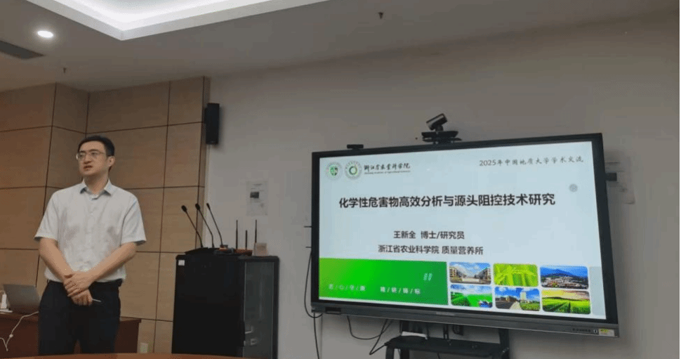 5月14日,浙江省農(nóng)業(yè)科學院農(nóng)產(chǎn)品質(zhì)量安全與營養(yǎng)研究所所長王新全一行三人來我院走訪交流。院長胡兆初及學院地質(zhì)分析團隊部分師生參加座談會。