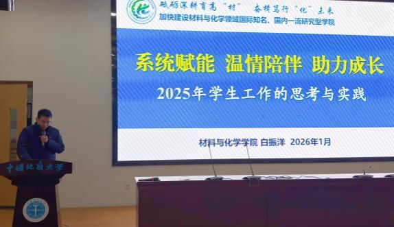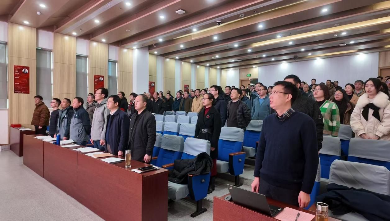 院長(zhǎng)胡兆初以《聚材實(shí)干拓新篇,向陽(yáng)而歌化未來(lái)》為題作年度工作匯報(bào)。他指出,過(guò)去一年,學(xué)院深入學(xué)習(xí)貫徹黨的二十屆四中全會(huì)精神和全國(guó)教育大會(huì)精神,認(rèn)真組織開(kāi)展深入貫徹中央八項(xiàng)規(guī)定精神學(xué)習(xí)教育,緊密圍繞學(xué)校學(xué)院中心工作,以“深化改革年”為主線,聚焦“強(qiáng)校強(qiáng)院”戰(zhàn)略,務(wù)實(shí)有力推進(jìn)年度各項(xiàng)任務(wù),學(xué)院事業(yè)取得新發(fā)展新進(jìn)步新成效。他向全體師生發(fā)出號(hào)召,要以?shī)^發(fā)有為的精神狀態(tài)和務(wù)實(shí)篤行的工作作風(fēng),確保“十五五”實(shí)現(xiàn)良好開(kāi)局,奮力推動(dòng)學(xué)院各項(xiàng)事業(yè)在新一年再上新臺(tái)階。