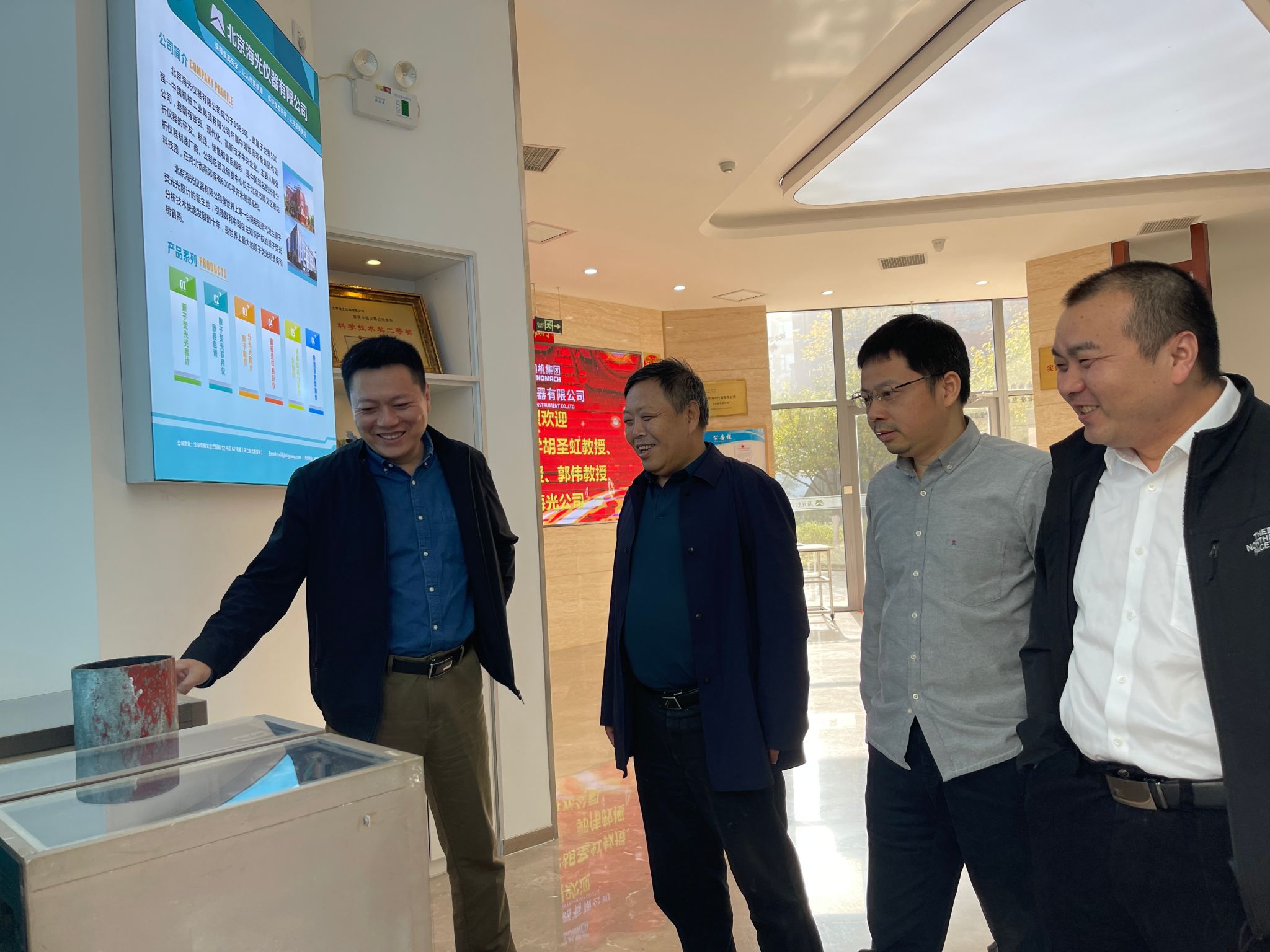 11月1日上午,海光公司總經(jīng)理劉海濤等熱烈歡迎胡院長一行來訪交流,詳細介紹了公司的發(fā)展現(xiàn)狀。“海光公司”源于北京地質(zhì)儀器一廠,現(xiàn)隸屬于中國地質(zhì)裝備集團,是國有獨資、高新技術(shù)、現(xiàn)代化中央企業(yè),主要從事分析儀器的研發(fā)、制造、銷售和售后服務(wù),是我國知名光譜分析儀器制造商,其龍頭產(chǎn)品原子熒光光譜儀(AFS)占據(jù)了全球30-40%市場份額。座談交流期間,胡兆初詳細地介紹了我院在地學(xué)分析人才培養(yǎng)、科學(xué)儀器裝置研發(fā)及校企合作等情況。為更好地服務(wù)于國家新一輪找礦突破戰(zhàn)略行動,雙方著重圍繞緊缺地質(zhì)測試裝備研發(fā)和研發(fā)人才培養(yǎng)等方面開展了深入交流。隨后,在研發(fā)總經(jīng)理梁敬和市場總經(jīng)理趙慷陪同下參觀了海光展廳和研發(fā)中心,詳細了解了分析儀器的研發(fā)和生產(chǎn)流程,并與擔任產(chǎn)品研發(fā)工程師焦正(我校21屆碩士畢業(yè)生)進行了交流,鼓勵其在儀器研發(fā)崗位上發(fā)揮地大人兢兢業(yè)業(yè)、勤奮好學(xué)的優(yōu)良傳統(tǒng),為國家和公司多做貢獻。