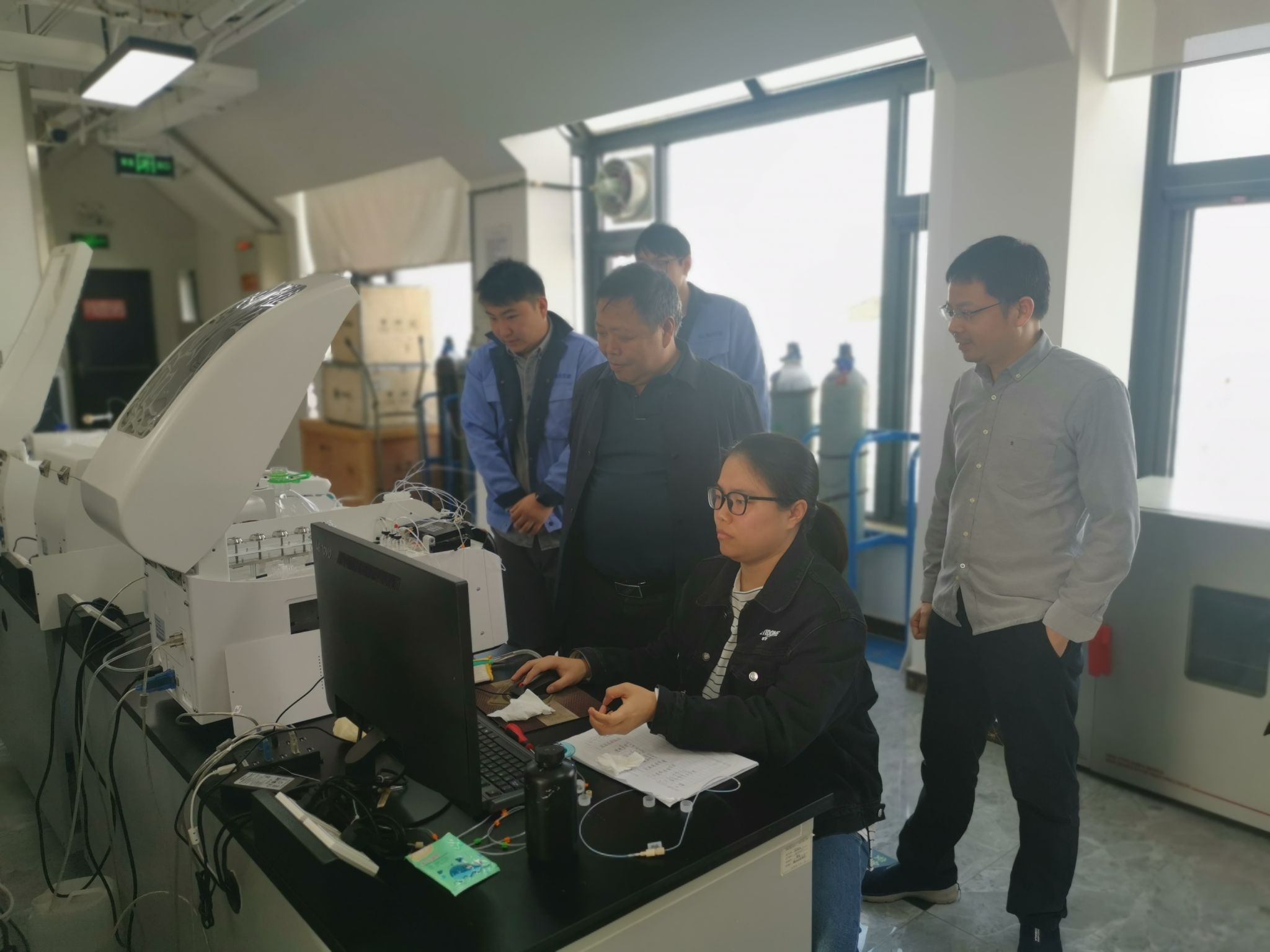 11月1日下午,胡院長一行來到北京市順義區(qū)天竺空港工業(yè)區(qū)的北京清質(zhì)分析技術(shù)有限公司。總經(jīng)理張輝健對該司在新能源及高純材料檢測業(yè)務(wù)發(fā)展及分析儀器聯(lián)合研發(fā)等情況的介紹。據(jù)他稱,該公司成立于2019年,專注于新能源及高純材料原位雜質(zhì)檢測的高科技企業(yè),是該領(lǐng)域同時通過中國合格評定認可委員會(CNAS認證)和中國計量認證(CMA)的第三方檢測中心(國內(nèi)僅三家),擁有多臺輝光放電質(zhì)譜儀(GD-SF-MS)、電感耦合等離子體磁質(zhì)譜儀(ICP-SF-MS)、電感耦合等離子體光譜儀(ICP-OES)以及專業(yè)級樣品處理間等。恰逢該司與廈門大學(xué)共同研發(fā)的獨特的輝光放電時間飛行質(zhì)譜儀(GD-TOF-MS)的安裝調(diào)試過程,胡兆初與工程師們詳細地探討了該儀器的工作原理及獨特的離子傳輸及檢測單元,并介紹了地質(zhì)分析團隊所開發(fā)的激光固體采樣微區(qū)分析技術(shù),雙方就未來共同開展礦物樣品及新材料固體直接分析及標準物質(zhì)研發(fā)、人才培養(yǎng)等方面進行了深入地溝通。