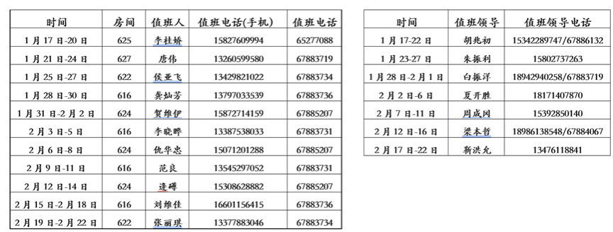 (一)學(xué)院寒假值班人員(見如下附表):